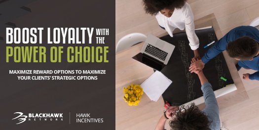 In our new infographic, Boost Loyalty With the Power of Choice, we present four ways you can leverage wide reward choice, and the value-adds that come with it, to grow your clients’ business, and yours. Make sure you’re able to offer your clients their choice of the right rewards, for the right recipients, for the right results.